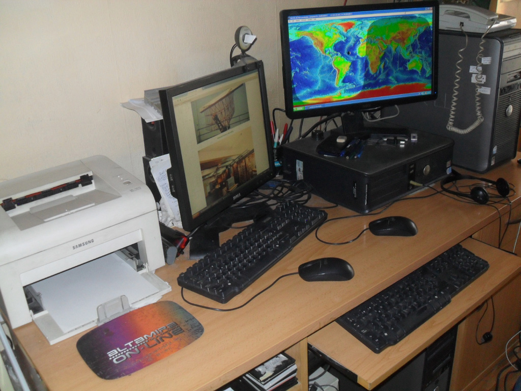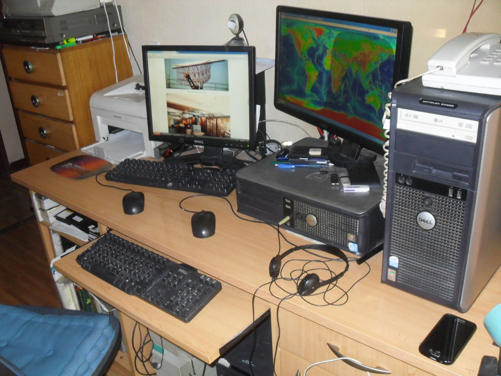 En el QTH de Madrid, tres ordenadores Dell Optiplex GX620 conectados en red.