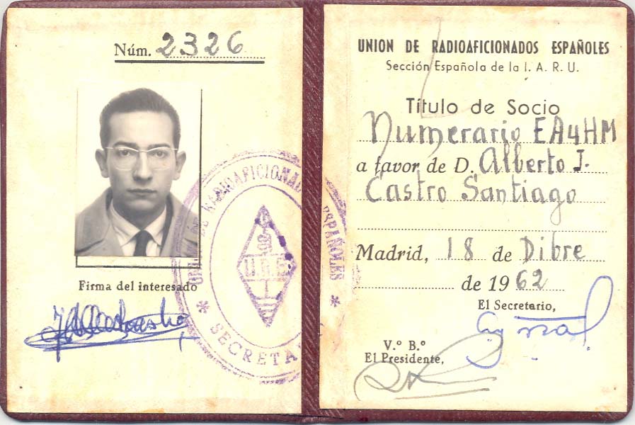 Carnet de URE de 1962 como EA4HM. |