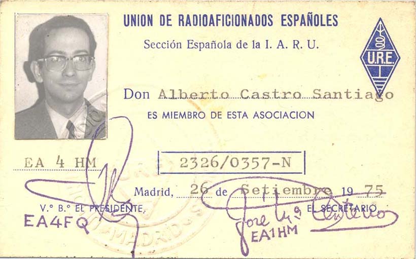 Carnet de URE de 1975 como EA4HM. |