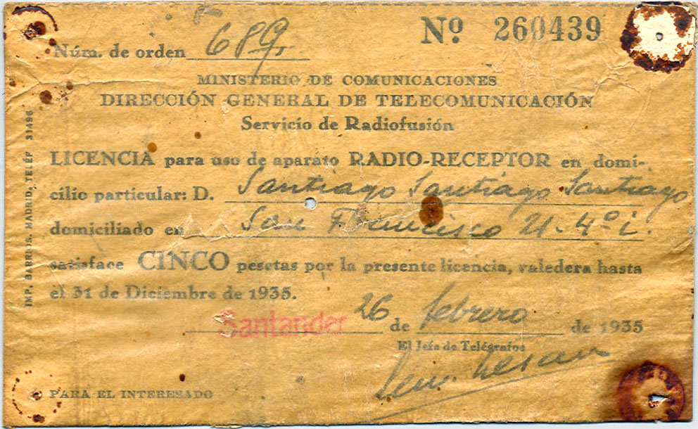 Licencia de antigua radio de galena |