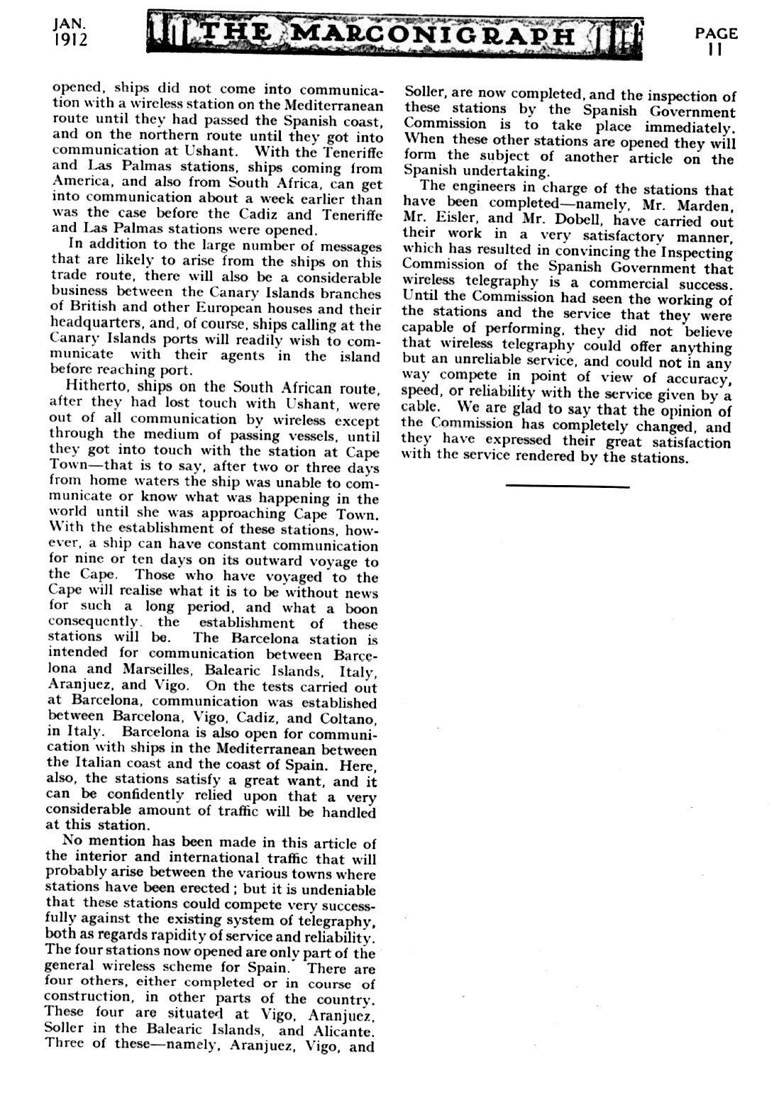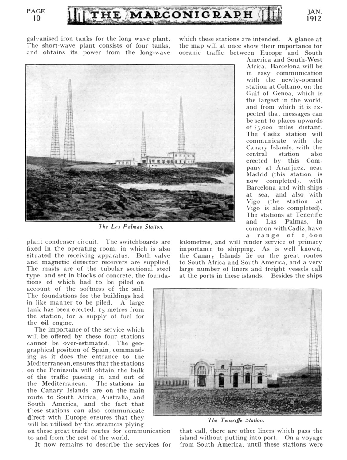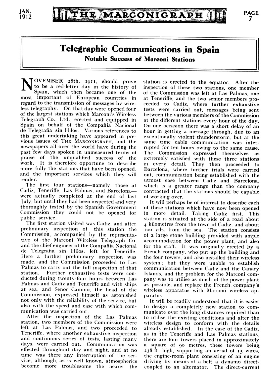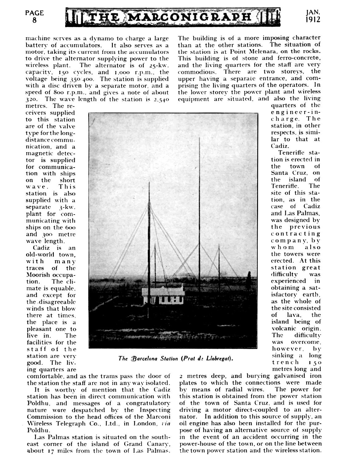 Reportaje de la Revista Marconigraph en Enero de 1912